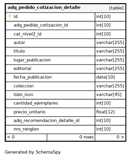 | adq_recomendacion_detalle_id | INT | 10 | √ | NULL |