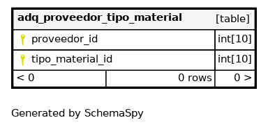 | PRIMARY | Primary key | Asc/Asc | proveedor_id + tipo_material_id |