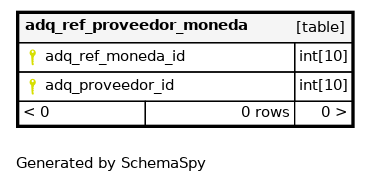 | PRIMARY | Primary key | Asc/Asc | adq_ref_moneda_id + adq_proveedor_id |