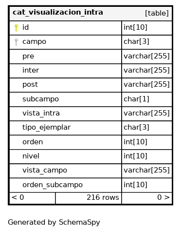 | campo_4 | Must be unique | Asc/Asc/Asc/Asc | campo + subcampo + tipo_ejemplar + nivel |