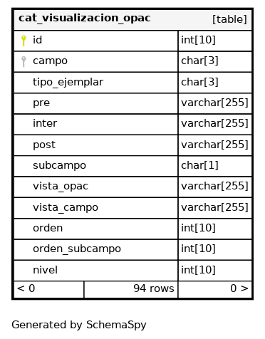 | campo_3 | Must be unique | Asc/Asc/Asc/Asc | campo + subcampo + tipo_ejemplar + nivel |