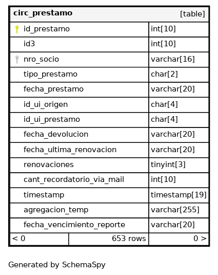 | PRIMARY | Primary key | Asc | id_prestamo |
