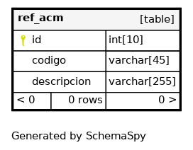 | codigo_UNIQUE | Must be unique | Asc | codigo |