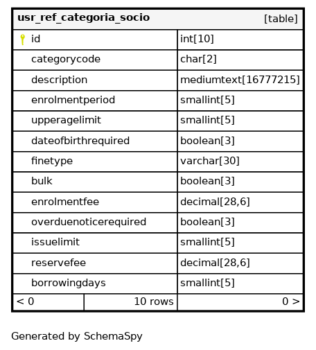 | categorycode | Must be unique | Asc | categorycode |