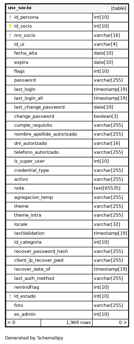 | PRIMARY | Primary key | Asc | id_socio |